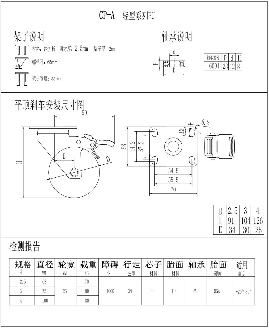 輕型腳輪-CP-A3-2531萬(wàn)向剎車PU